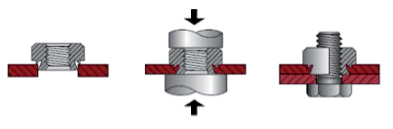 壓鉚工藝是一種在壓鉚機的特殊沖壓力作 用下將專用壓鉚緊固件鉚接或漲鉚方式“ 冷焊”在金屬板件上的表面安裝技術(shù),可 提供薄金屬鈑金件牢固的、可重復(fù)使用的 永久螺紋和安裝的一種新工藝,并且適用 于PCB板材料等其它可延展的或非塑形薄的 材料。 壓鉚機的使用可以節(jié)約大量的人工成本。 壓鉚這種先進的自鉚工藝僅需一次即可完 成替代傳統(tǒng)的焊接、翻孔、攻絲等多道加 工工序的生產(chǎn)工藝。因此對生產(chǎn)線的質(zhì)量 和效率進行大幅提升。其特點是能夠優(yōu)化 勞動力,提高質(zhì)量,提升生產(chǎn)效率。另外 壓鉚機能大量節(jié)省加工準備工作時間并不 損傷工件表面鍍層。我們除了提供標準壓 鉚設(shè)備外,也可以定制特殊設(shè)備以適用于 更廣泛更專業(yè)的領(lǐng)域。 Fasteners utilize self-clinching, broaching, flaring, surface mount, technology to provide strong, reusable, and permanent threads and mounting points in thin sheet metal, P.C. board materials, and other ductile or non-ductile thin material.